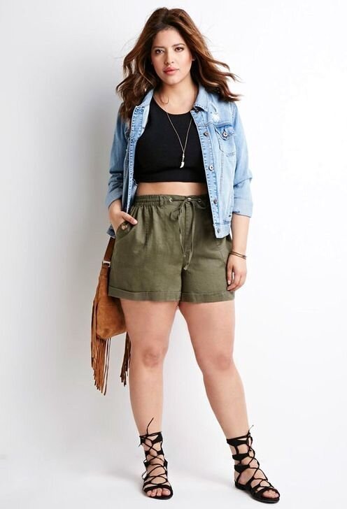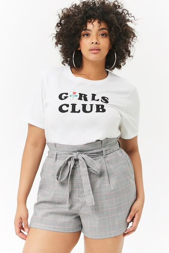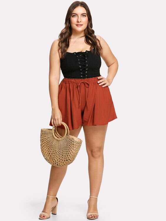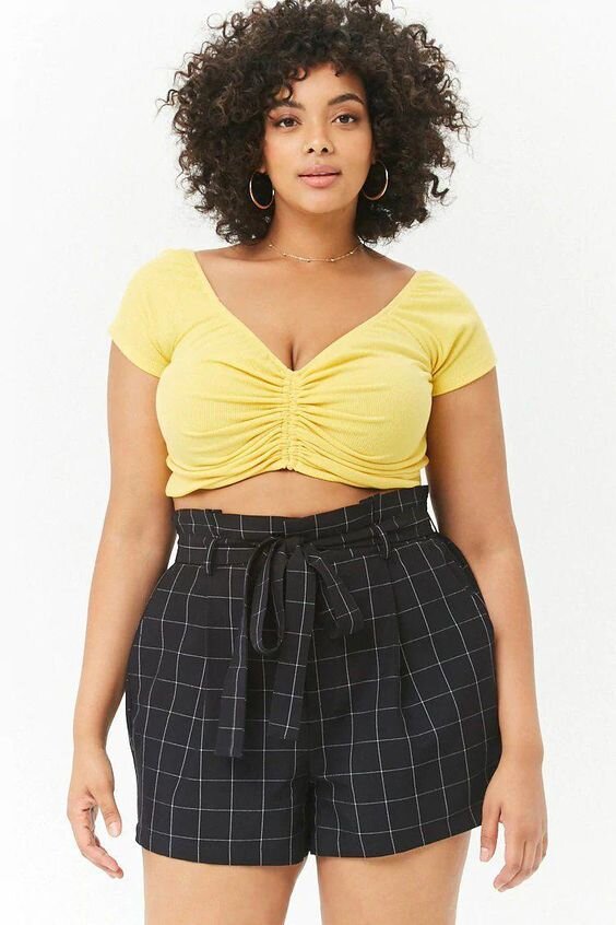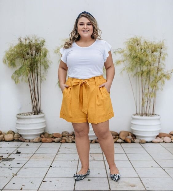 Дамам с аппетитными формами, стремящимся создать изящный образ летом, стоит обратить внимание на свободные шорты с высокой талией и ремнём. Они отлично подойдут для создания стильного ансамбля. Например, можно сочетать их с футболкой в клетку и свободным кроем — такой лук будет выглядеть свежо и актуально.