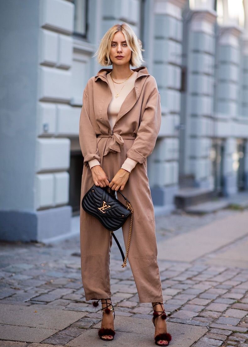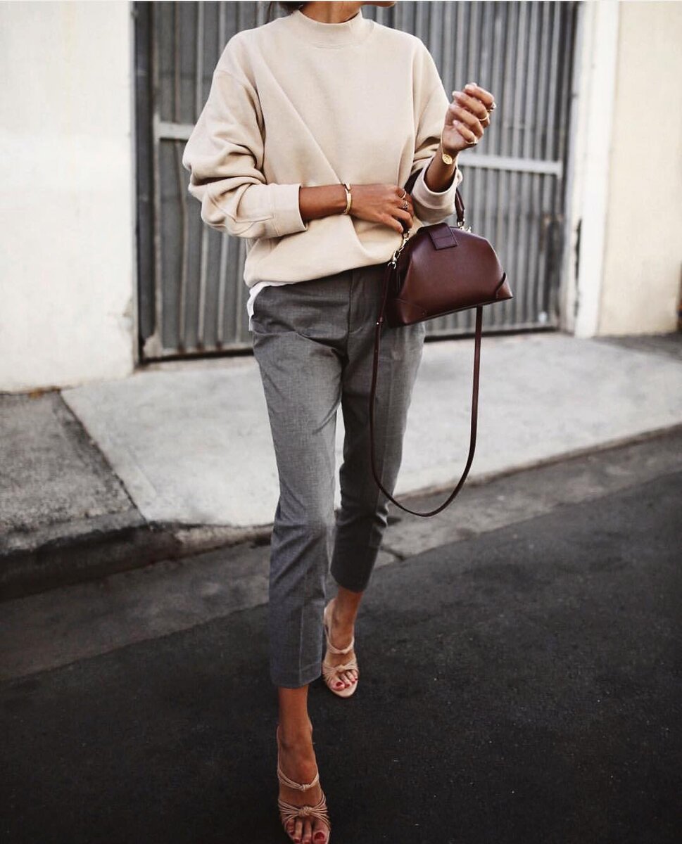 Следующая подборка образов демонстрирует, как можно в повседневной жизни носить светлый верх и низ нюдового цвета, и выглядеть при этом не скучно. Гуру моды предлагают дополнять вещи нейтрального бежевого цвета акцентными аксессуарами: сумками, обувью, солнцезащитными очками, ремнями и платками.
